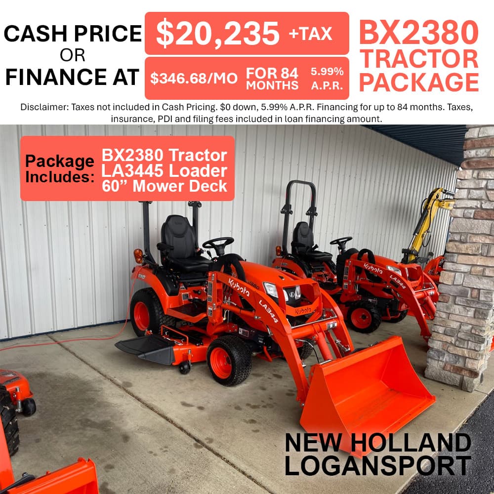 If you're looking for quality equipment and exceptional services provided by trained experts, you've come to the right place. At New Holland Logansport, we pride ourselves on matching each customer's unique needs with the Kubota that will serve them best. We're glad you're here, where you can check out our inventory, order parts, schedule a service appointment or simply give us a call at 574.753.6291 and let us know how we can help you.