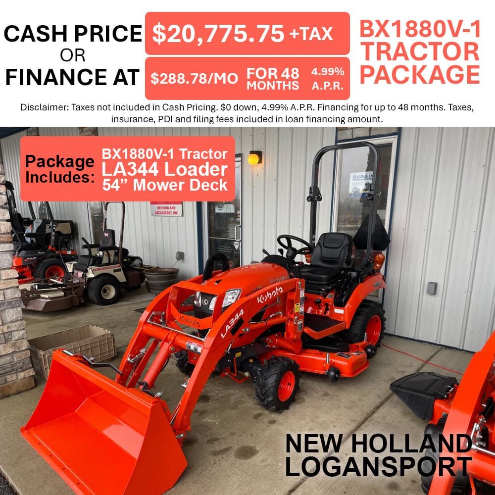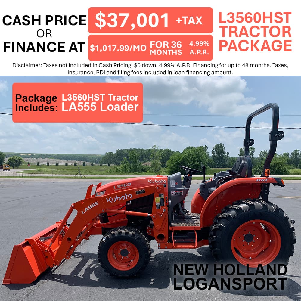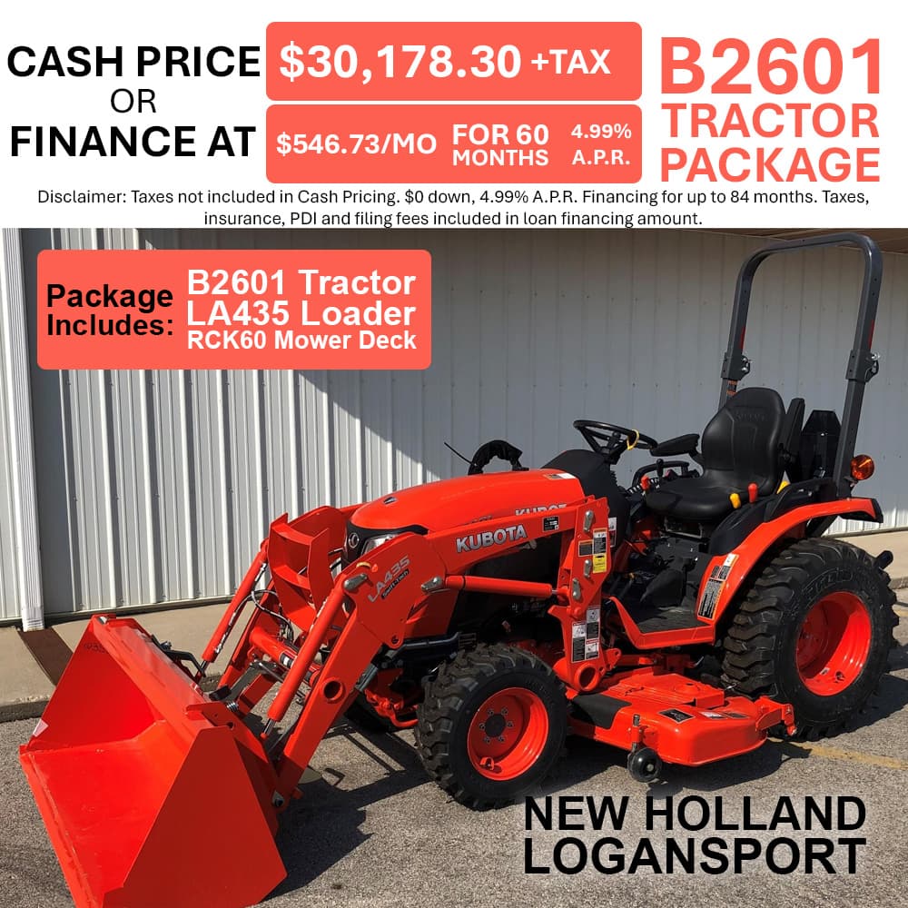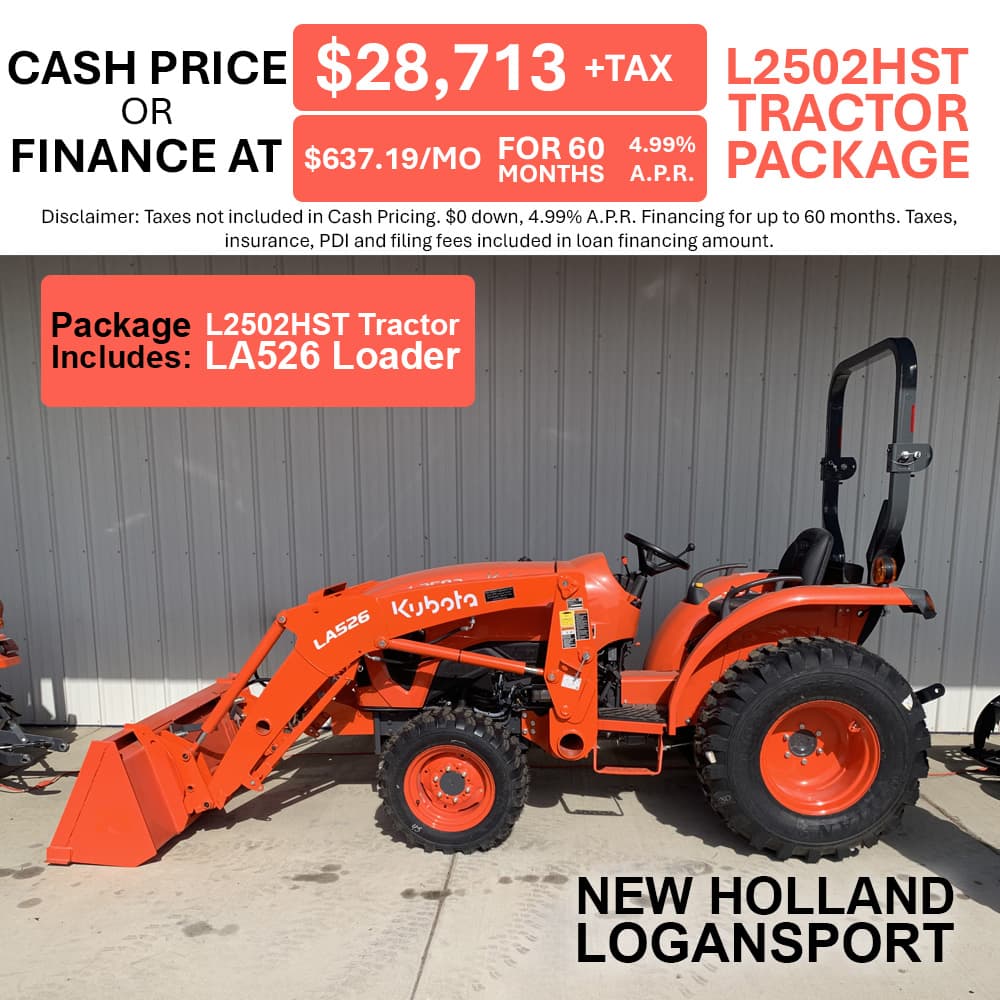 If you're looking for quality equipment and exceptional services provided by trained experts, you've come to the right place. At New Holland Logansport, we pride ourselves on matching each customer's unique needs with the Kubota that will serve them best. We're glad you're here, where you can check out our inventory, order parts, schedule a service appointment or simply give us a call at 574.753.6291 and let us know how we can help you.